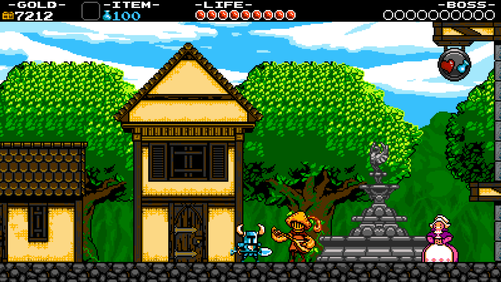 - Девушка с водой — носит два вера с водой в коромысле, забравшись на которое Лопатный рыцарь сможет прыгнуть на крышу дома с сундуком.