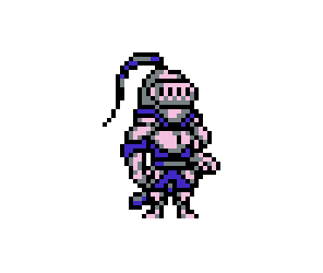 Knights have two hit points and attack only by jumping forward and striking at their opponent. They move slowly back and forth, but can also jump back to avoid explosions. This makes their attacks unpredictable, and for tougher enemies than Goldarmor. Unlike regular enemies, Knights are knocked down and fall off the screen much like Goldomes. They also only drop Jars.