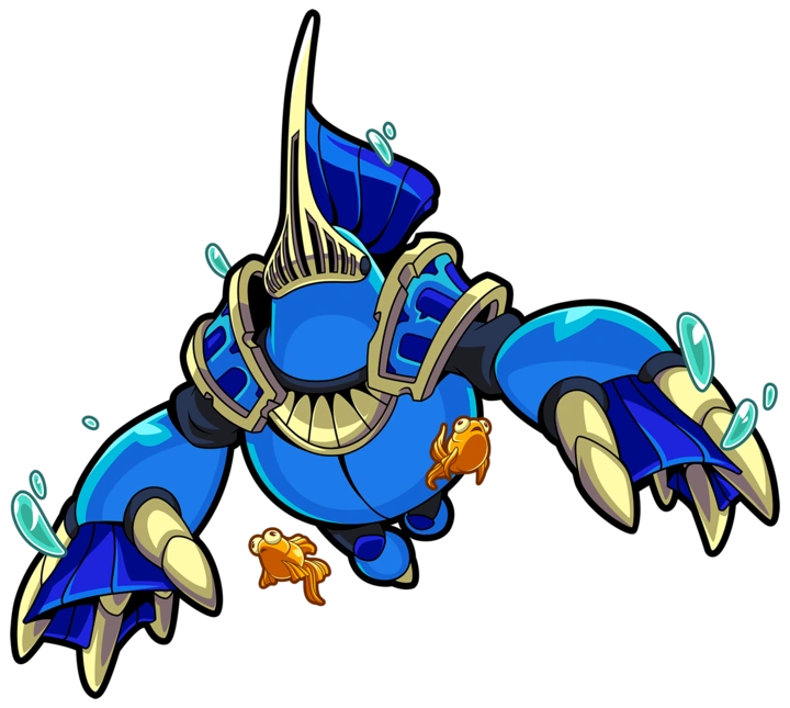 Before donning his flaming armor, Mole Knight once worn an aquatic suit and was one of the Hexcavators and ran into, and tangoed Shovel Knight before. When the entrance to the weapon was open he along with the others went to retrieve it unfortunately this treasure was the very Amulet that The Enchantress was sealed in, in turn she put him and the other 4 in crystals while Drill Knight was Corrupted, fortunately Shovel Knight defeated him and escaped the crumbling tower. After that, Mole Knight decided to switch from a watery diver to a fiery excavator, jumping in the lava from Smeltworks.
