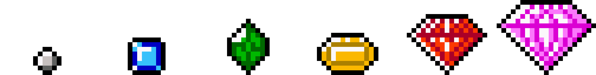 - In the PAX 2013 demo: silver coins (1), gold coins (5), ruby (10), amethyst (25), sapphire (20), emerald (30), gold (35), small diamond (50) and large diamond (100)