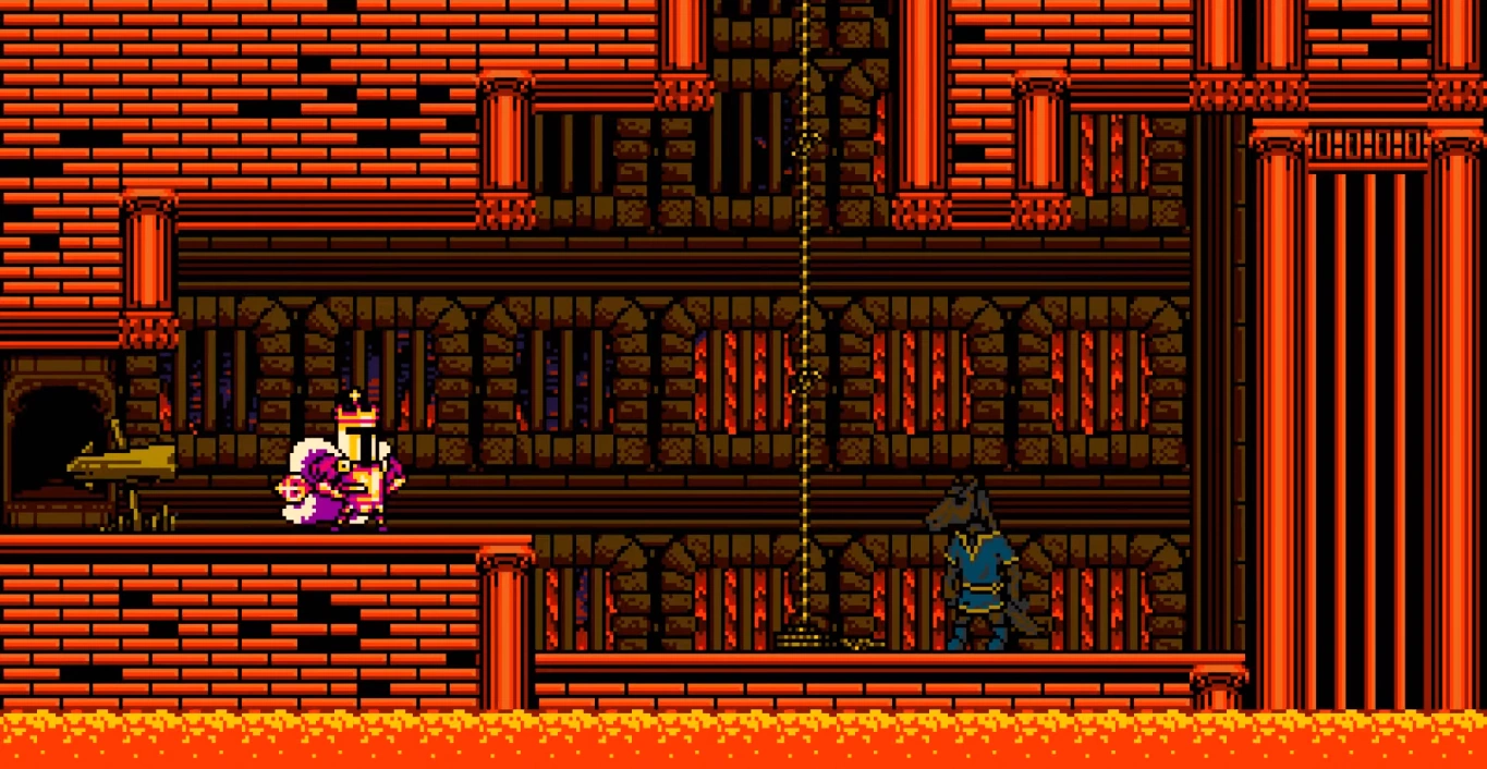 Volcanic Vault is a Lost City Heirloom Stage in Shovel Knight: King of Cards. It features Barton, an adventurer who is saddled with loot and is unable to leave the area because of it.
